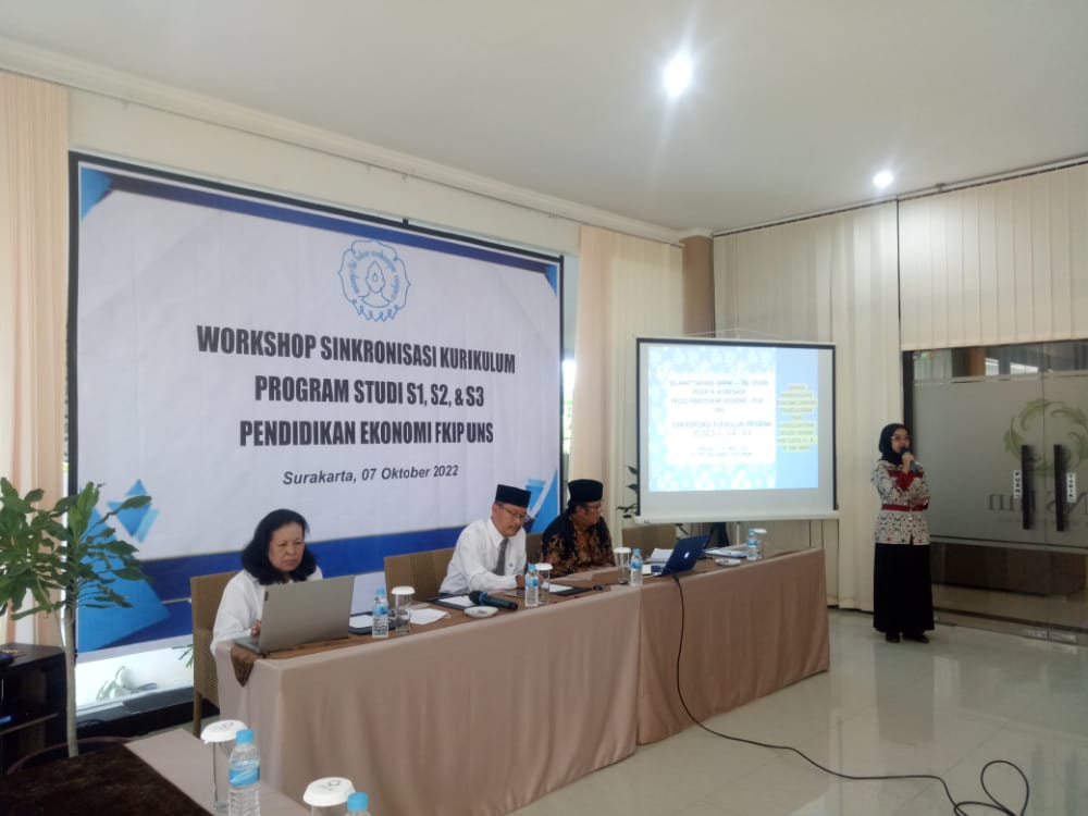Pada tanggal 7 Oktober 2022, telah diadakan sebuah workshop bertema “Sinkronisasi Kurikulum Pendidikan Ekonomi” di Surakarta. Acara ini merupakan inisiatif kolaboratif antara Program Studi S1, S2, dan S3 Pendidikan Ekonomi FKIP UNS, dengan tujuan untuk mengatasi tantangan dalam mengembangkan kurikulum pendidikan ekonomi yang lebih relevan dan responsif terhadap perkembangan terkini di dunia ekonomi. Workshop ini dihadiri oleh para akademisi, praktisi pendidikan, dan ahli ekonomi yang berpengalaman. Diskusi-diskusi mendalam dilakukan untuk mengidentifikasi kebutuhan dan tren dalam dunia ekonomi saat ini, serta merumuskan langkah-langkah konkret dalam memperbarui kurikulum agar dapat memberikan pemahaman yang lebih mendalam kepada para Mahasiswa. Diharapkan hasil dari workshop ini akan mendorong terwujudnya kurikulum pendidikan ekonomi yang dapat menghasilkan lulusan-lulusan yang siap menghadapi tantangan dunia ekonomi yang semakin kompleks.